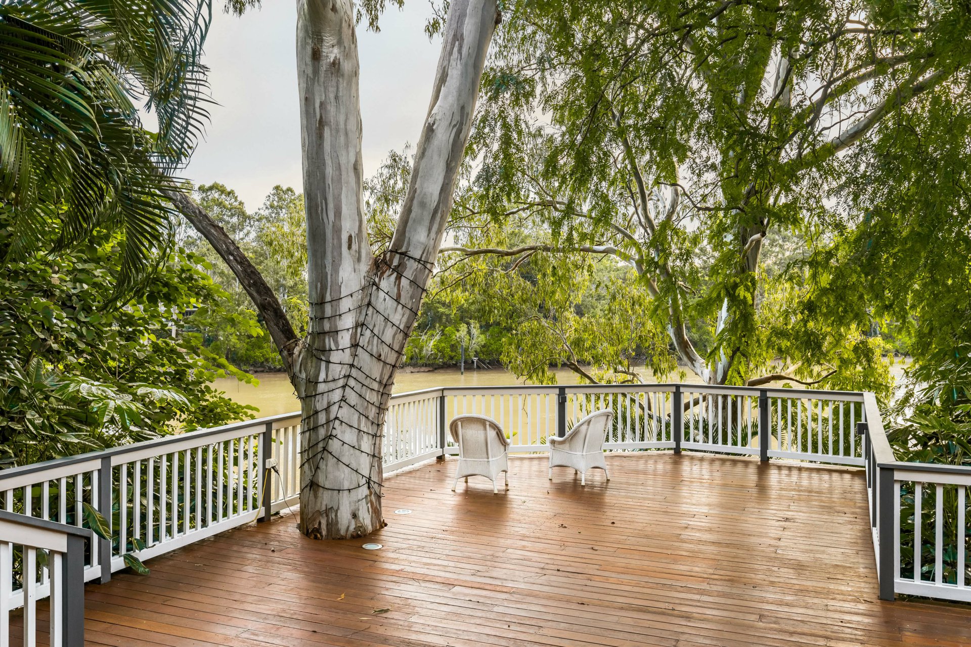 Perched delicately amongst the trees on the Brisbane River, this 1974-constructed family residence strikes a harmonious relationship between post-modernist architecture and nature. The result is a home that feels calm, timeless, and deeply connected to its splendid riverfront setting.