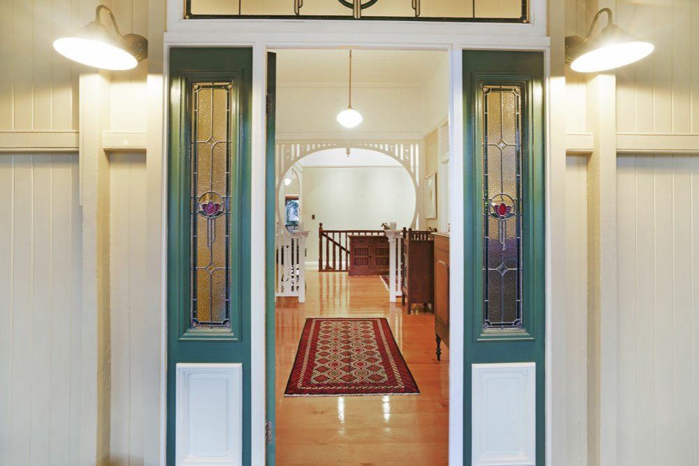 With a symmetrically fronted facade, pyramid roof, encircling verandah, decorative pediments, and interior details the house has all the features desired of Colonial period Queenslander.