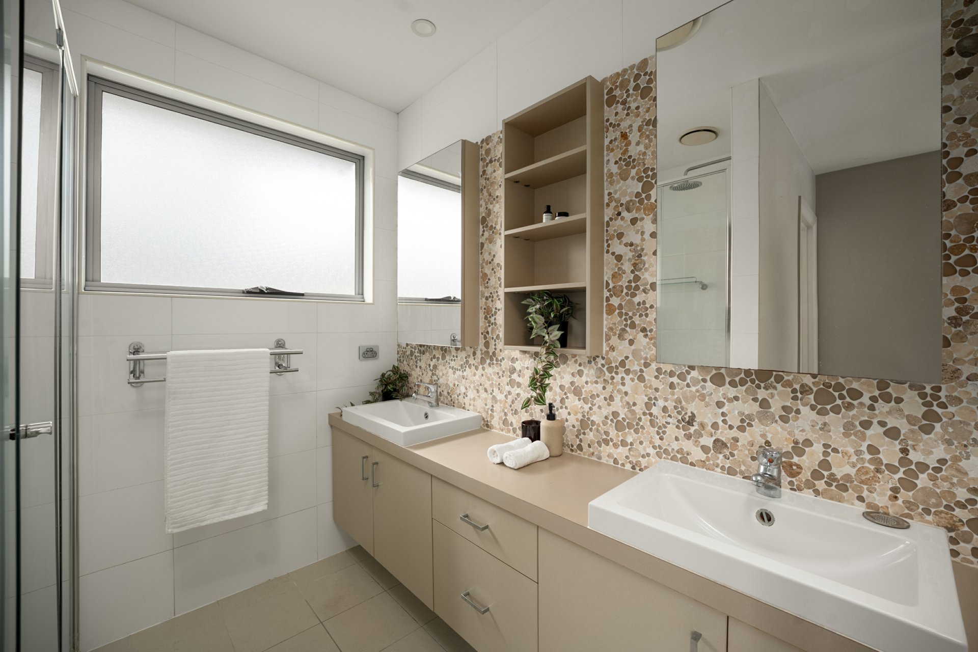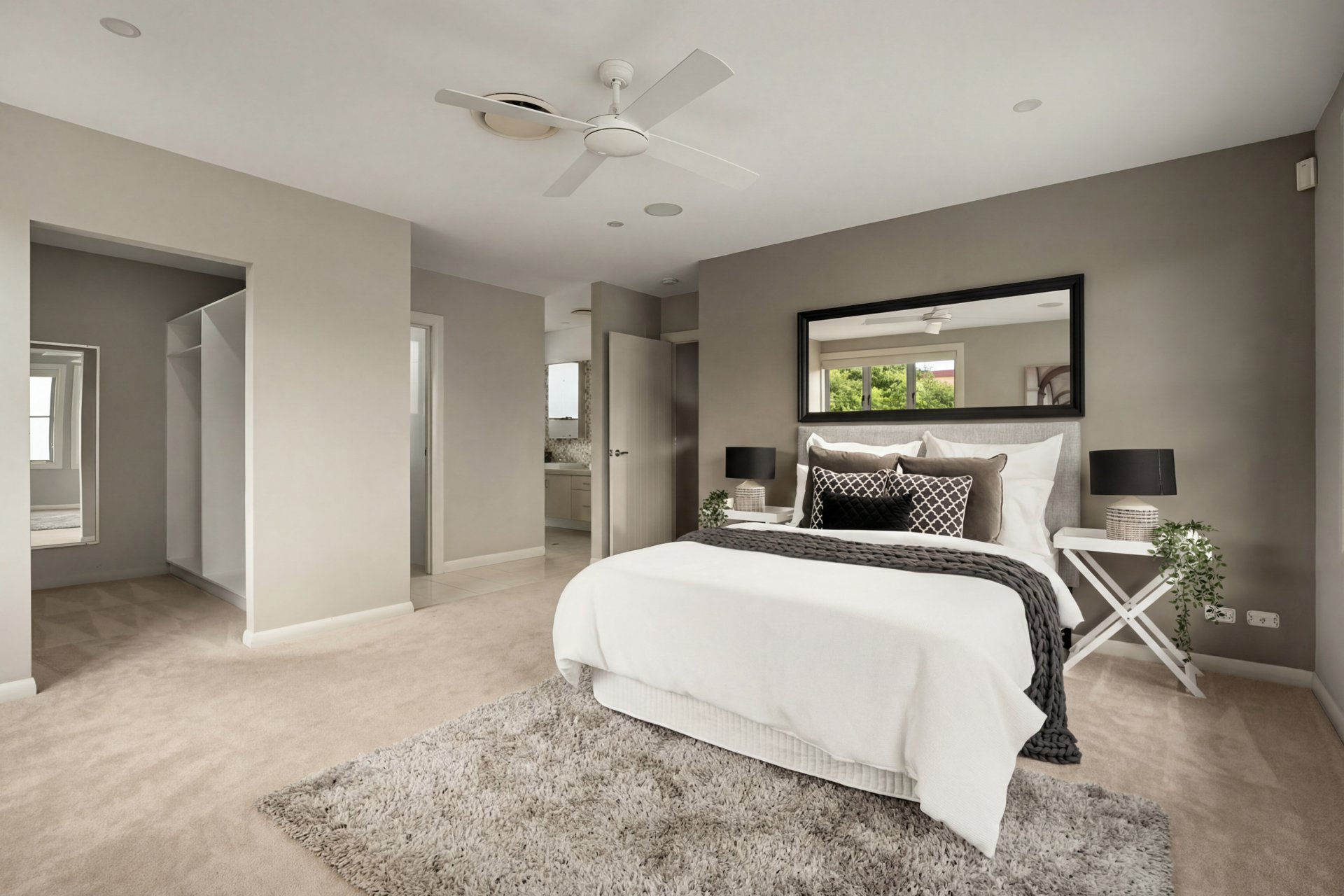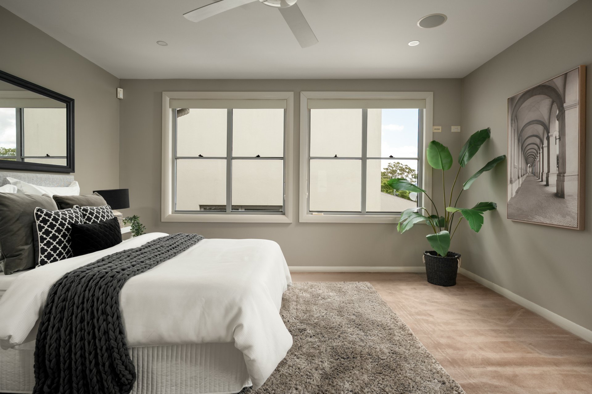 This level also accommodates three bedrooms, including the luxurious master suite with tranquil pool views, walk-in robe and modern ensuite featuring dual vanities and a double shower. The additional bedrooms offer floor-to-ceiling built-in robes and are serviced by the main bathroom.