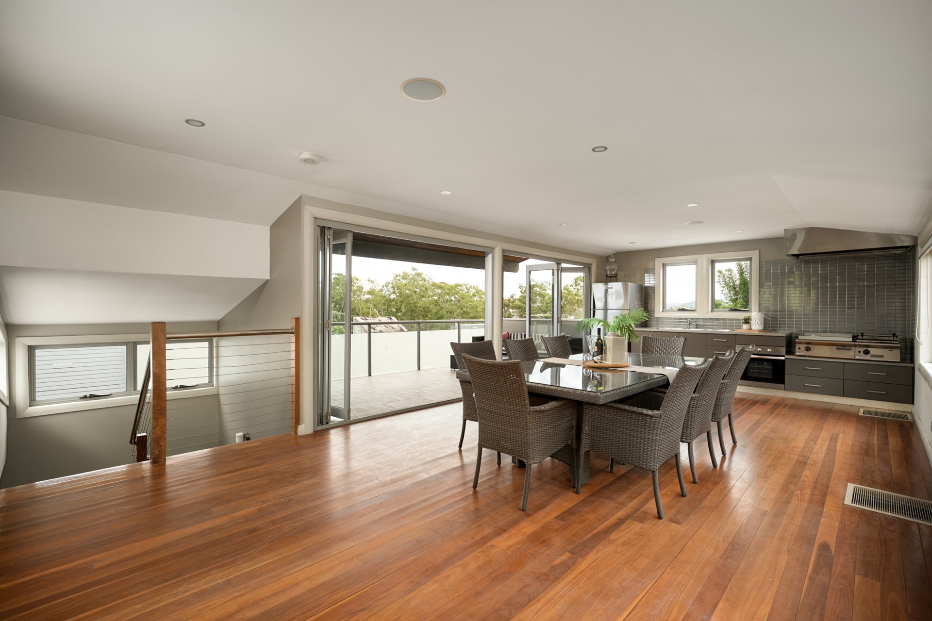 Crowning the home, the upper level is a true entertainer’s haven. An enclosable living area opens through bi-fold doors to an elevated balcony, where panoramic city and skyline vistas take centre stage. Complete with an outdoor kitchen and dual Mareno commercial-grade BBQs, this space is perfect for hosting memorable gatherings.