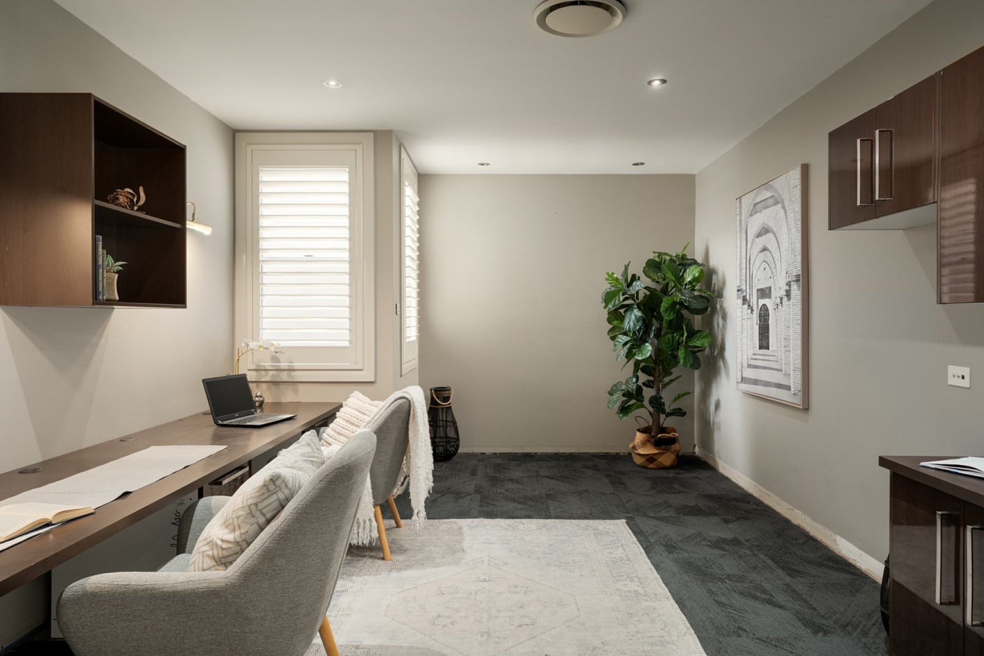 Privately positioned behind a security gate, the home offers a double garage with loft storage. Upon entry, the ground level unveils a versatile layout comprising a home office, guest bedroom, bathroom and laundry, alongside an open-plan living area complete with a built-in bar/kitchenette. Ideal as a teenage retreat or self-contained granny flat, this space opens via bi-fold doors to a covered alfresco terrace and heated swimming pool, creating a seamless indoor–outdoor connection.